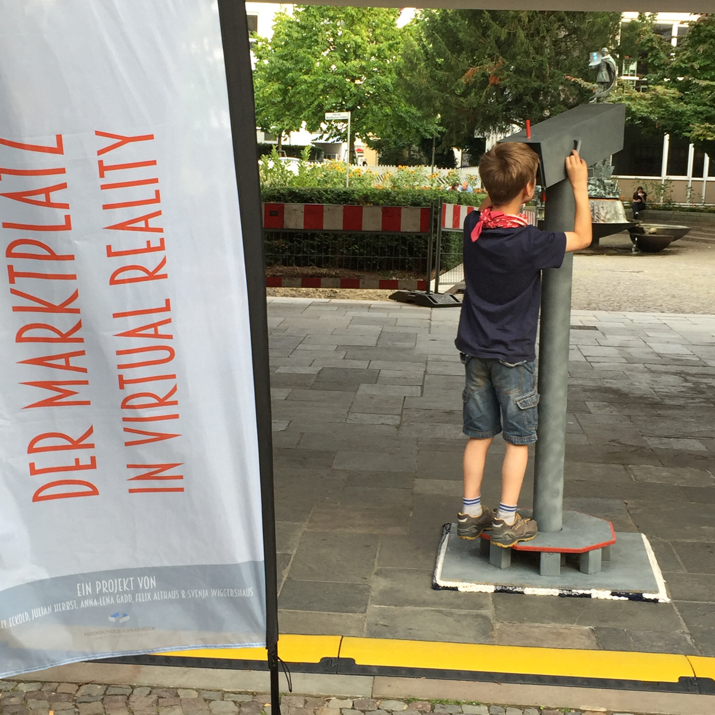 Das Exponat sollte eine 360° Ansicht des Osnabrücker Marktplatzes bieten und ausgewählte Themen der vergangenen Kulturnächte mit Virtual Reality darstellen.