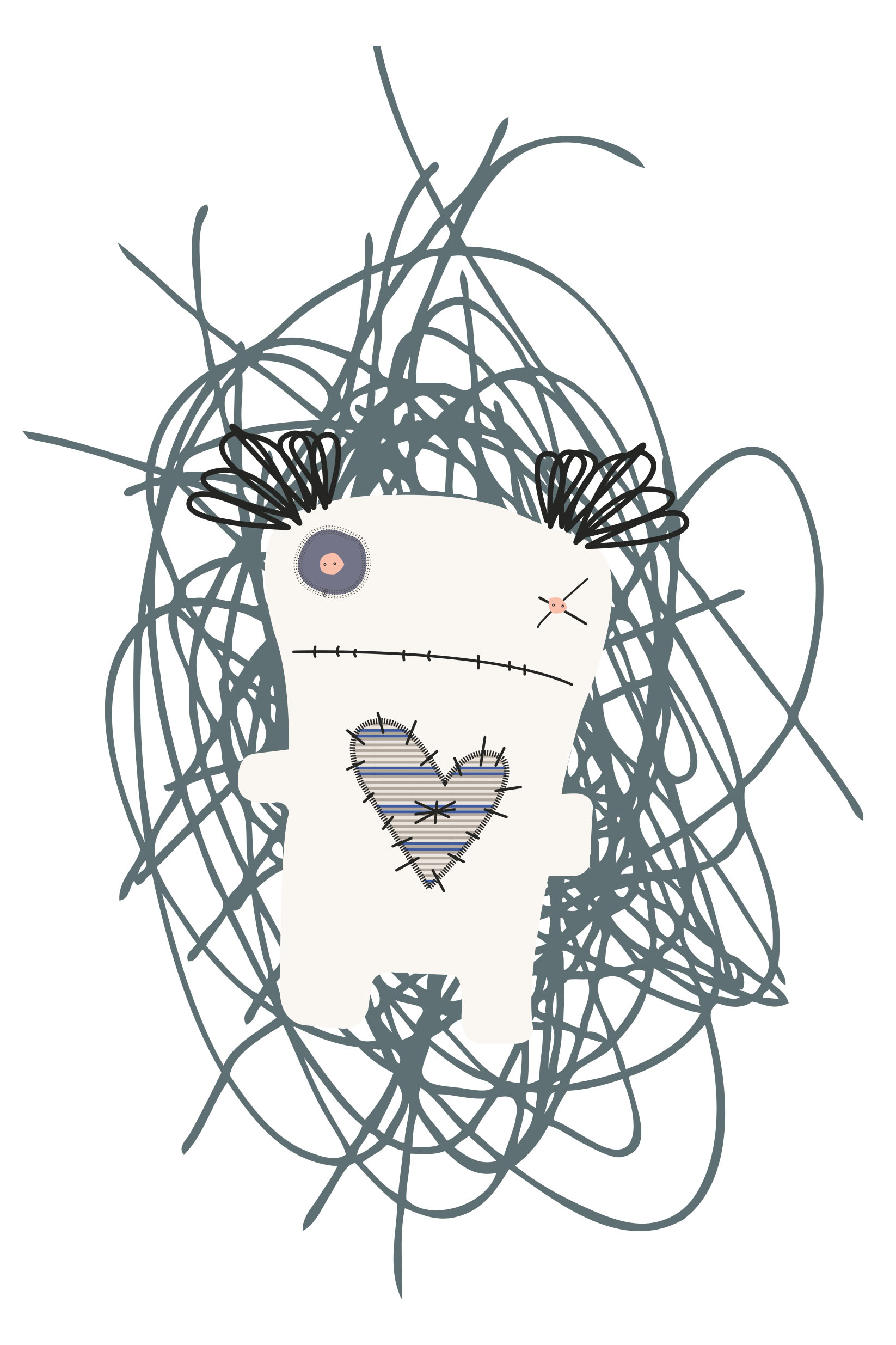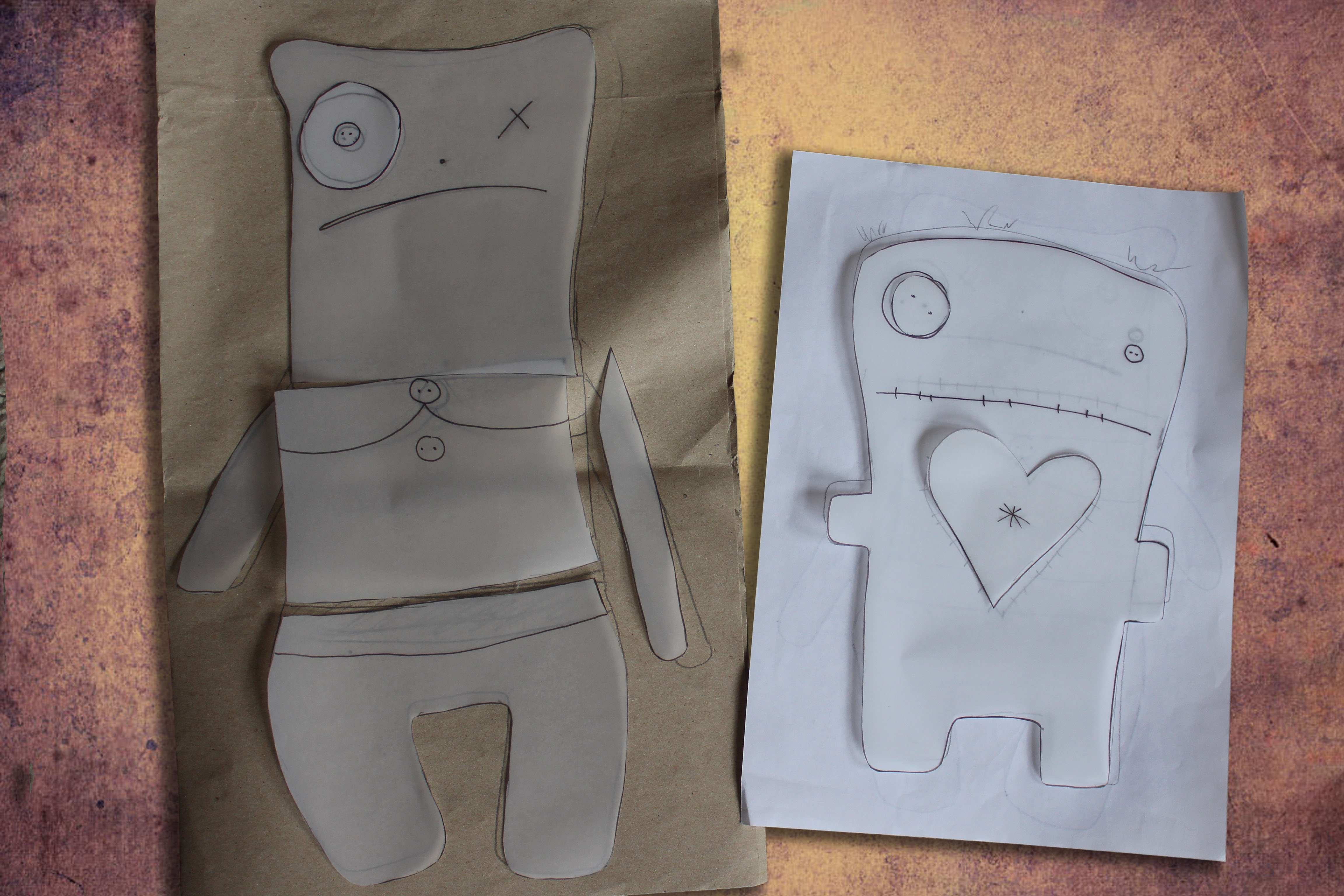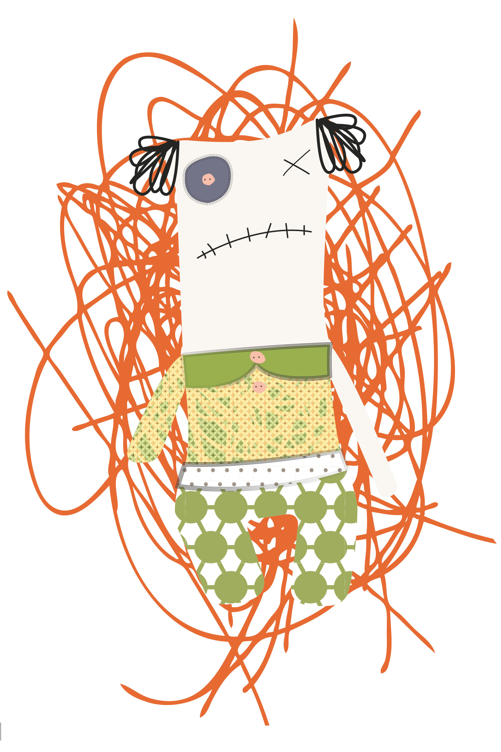 Als Student muss man während des Semesters so manche Tortur über sich ergehen lassen. Aufgaben sind unlösbar und so mancher Dozent raubt einem den letzten Nerv. Manchmal steigt die Wut und der Ärger gar ins unermässliche und man wünscht sich, seiner Wut mal so richtig “freien Lauf” zu lassen. Mit dieser Erfahrung im Hinterkopf war die Idee für einen interaktiven Prototypen getreu dem Semesterthema “Kombinieren und Konfigurieren” schnell gefunden - ein System zum konfigurieren einer eigenen individuellen Doll sollte entstehen und in mehreren methodischen Schritten vorbereitet und anschließend möglichst funktionstüchtig umgesetzt werden. So schnell wie auch die Idee für das Thema der Voodoo-Dolls kam, so schnell stand auch fest wie diese aussehen sollten. Die ersten Skizzen entstanden somit bereits bei der Definition der Zielgruppe. Da diese jedoch wie ein Kinder-Klapp-Bilderbuch in auswechselbare Körperteile unterteilt werden sollten, mussten hierfür vorab eine Grundfigur mit Illustrator erstellt werden, um die Maße einhalten zu können. Es wurden somit vier verschiedene Köpfe, Ober- und Unterkörper erstellt. Somit gibt können aus insgesamt 12 Körperteilen 64 verschiedene Kombinationsmöglichkeiten und somit 64 unterschiedliche Voodoo-Dolls erstellt werden. Da jede dieser 64 Möglichkeiten noch in vier verschiedenen Mustern bzw. Stoffen auswählbar sind, gibt es letzten Endes 4096 Möglichkeiten sich seinen persönliches Voodoo-Doll zu erstellen. Es wurden für den Konfigurationsprozess somit 64 Körperteile grafisch mit Illustrator erstellt. Zusätzlich wurde angedacht die Voodoo-Doll in zwei verschiedenen Größen anzubieten. Diese Überlegung wurde bis jetzt allerdings nur beim Erstellen zweier Prototyp-Dolls umgesetzt, im System noch nicht.